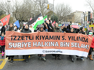 Bugün itibariyle 4 yılı geride bırakan ve 5. Yılına giren Suriye İntifadası, İstanbul’da Fatih Camii’nden Saraçhane’ye yapılan yürüyüş ile selamlandı. Esed rejimi, destekçisi İran ve mezhepçi çeteler telin edildi.