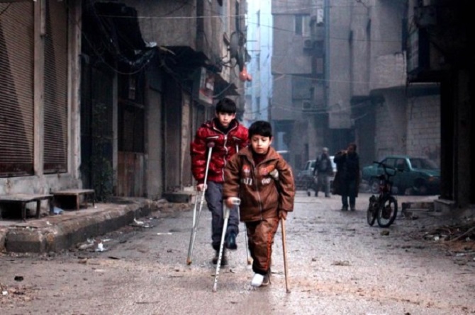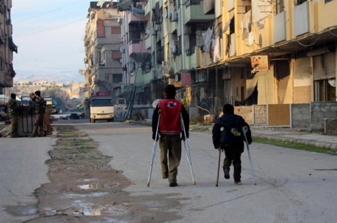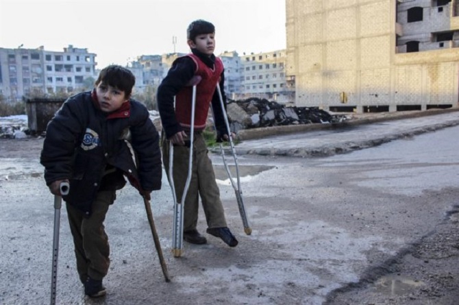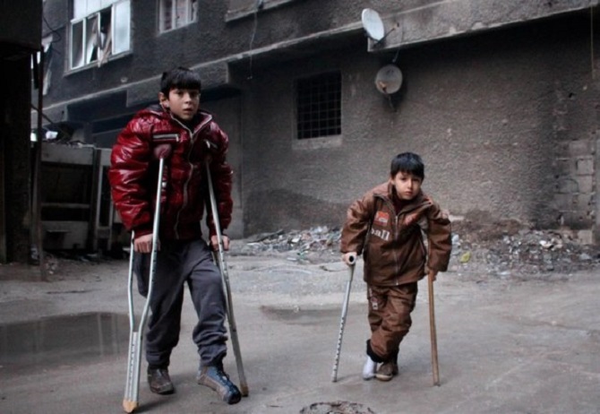 Şam'ın Cobar bölgesinde Esed güçlerinin saldırılarında yüzlerce çocuk ölürken yararlananlar da hayatlarına koltuk değneğine bağlı olarak devam ediyor.