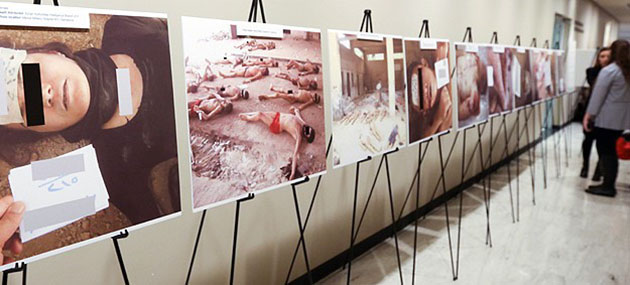 "Sezar" kod adlı asker tarafından temin edilen ve işkenceyle katledildiği belirtilen 11 bin kişiye ait 55 bin fotoğraftan bazı örneklerin yer aldığı sergi, 20 Mart'a kadar açık kalacak.
