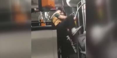 Görüntülerde, ırkçı Almanın tramvay yolculuğu esnasında 17 yaşındaki Suriyeli gence tükürdükten sonra tekme attığı görülüyor.