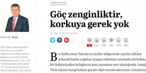 Mehmet Acet’in Yeni Şafak’taki yazısını, aynı gazetenin yazarı olan ve Türkiye’deki Suriyeli muhacirlerin ülke ekonomisine önemli bir yük olduğu tezini işleyen Hasan Öztürk’ün iyi okuması lazım!