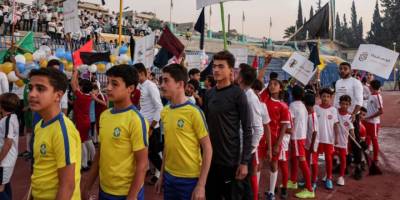 İdlib'de, kendi ülkelerinde mülteci edilmiş çocuklar yaşadıklarına atıfla "Kamplar Dünya Kupası" etkinliği düzenliyor.
