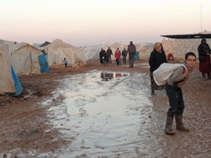 Hayırseverler ve yardım kuruluşlarının çabalarıyla yaşamaya çalışan çadırkent sakinleri, şiddetli yağışlardan dolayı çadırlar arasındaki yollarda çamur yığını oluşurken, çocukların çamur içinde zorluklarla ilerlediği gözleniyor.