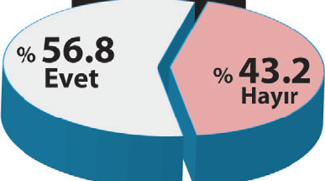 Seçim sonuçlarını büyük bir oranda tutturan KONDA Araştırma ve Danışmanlık Şirketi'nin yaptığı ankete göre, haziran ayında yüzde 53.3 olarak ortaya çıkan 'evet' oyları son düzlükte yüzde 56.8'e ulaştı.