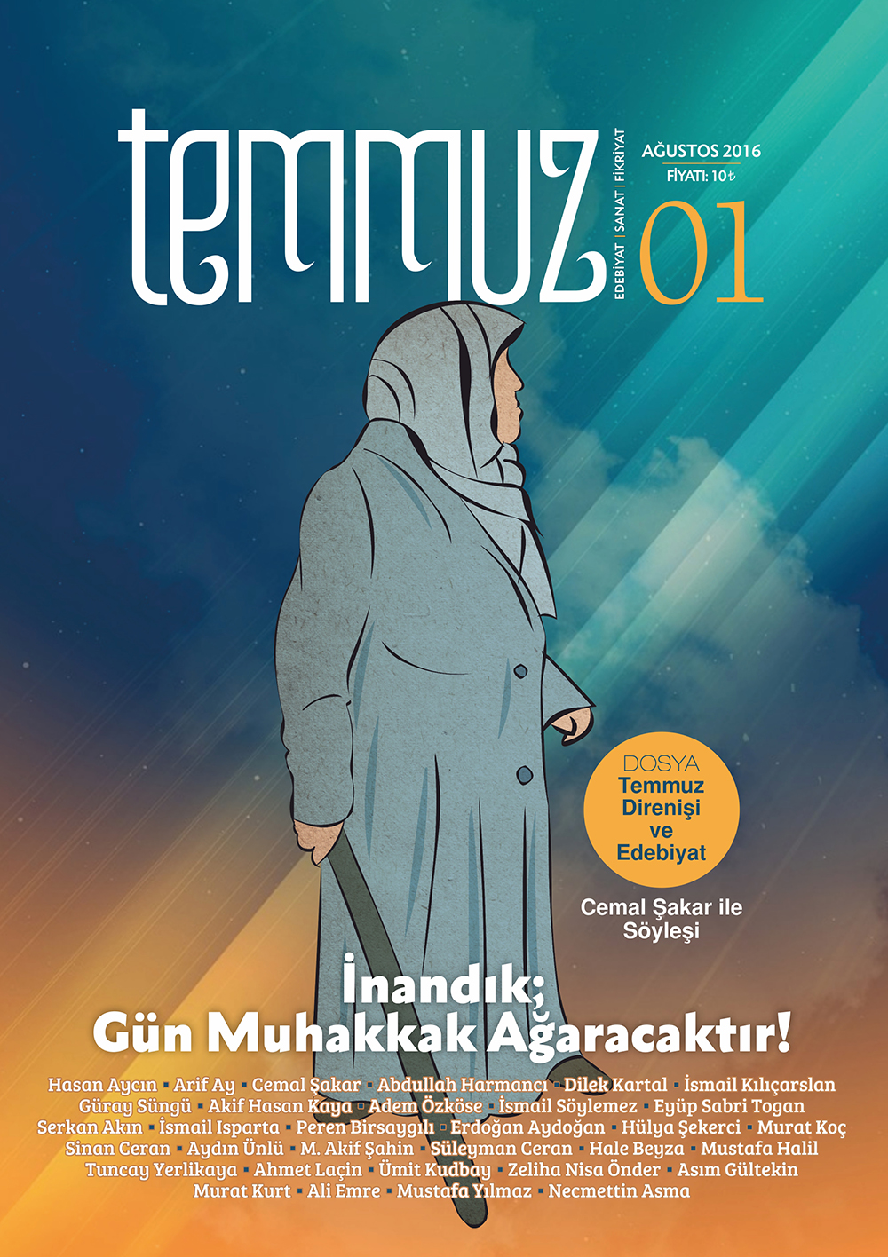 Edebiyat, Sanat ve Fikriyat dergisi Temmuz, Ağustos 2016 tarihli ilk sayısı ile okurlarına merhaba diyor. Şiir, öykü, deneme, inceleme, çeviri ve çizgi türünden eserlerin yer aldığı dergide ayrıca “Temmuz Direnişi ve Edebiyat” başlıklı dosya ile 15 Temmuz darbe girişimi lanetlenirken halkın kutlu direnişi selamlanıyor. Dergide Cemal Şakar ile konu üzerine yapılmış bir de söyleşi yer alıyor.