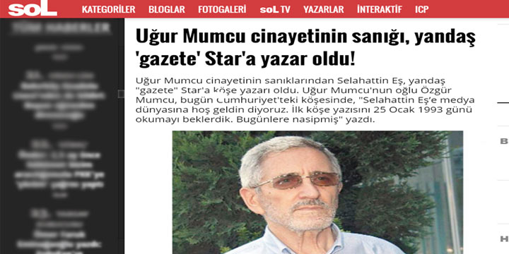 Üzerinden neredeyse bir yıl geçmiş bir yazıyı bugün kaleme alınmış gibi sunma ahlaksızlığını göstermekten çekinmeyen Sol-Faşist cenahın sözcüsü Sol-Haber Selahaddin Eş’i okurlarına açık hedef olarak göstermiş. Ne yazısında bu ülkenin yakın tarihinde gerçekleştirilmiş Uğur Mumcu da dahil birçok fail-i meçhul cinayeti Selahaddin Eş’e yıkma basitliğini ortaya koyan ve ne de bu yazıyı yeniymiş havasında pişirip yeniden servis eden Sol-Haber’de elbette samimiyet ve hakkaniyet arayacak değiliz. Hedef gösterdikleri ismin, Selahaddin Eş’in 35 yıl boyunca hayatını farklı ülkelerde geçirmek durumunda bırakılmasının nedenini sorgulamalarını da beklemiyoruz. Gerçekliği tersyüz ederek, hakikati açıkça çarpıtarak böyle bir yazıyı yazan oğul Mumcu ve onu yeniden servis eden Sol-Haber’in Selahaddin Eş’i hedef gösterirken adalet kaygısı taşımadığı da çok açık. Açık çünkü Selahaddin Eş’in adı geçen cinayetlerle bir alakasının olmadığı, hukuki olarak bunun ispatı yönünde kayda değer hiçbir delilin ortaya konulmadığı, tersine sırf bu yüzden yıllarca mağduriyet yaşayan isimler arasında olduğunu görmezlikten geliyorlar. Kendileri yargıç olmuş Selahaddin Eş’in “Uğur Mumcu’nun katili” olduğuna hükmetmiş ve Star gazetesi ile Cumhurbaşkanı Erdoğan’ı da Selahaddin Eş’i koruyup kollamakla itham etmişler. O kadar yani! Sol-Haber bulmuş uyduruk malzemeyi ve atmış yalanı. Ama yalanı tutmamış yine tabi!