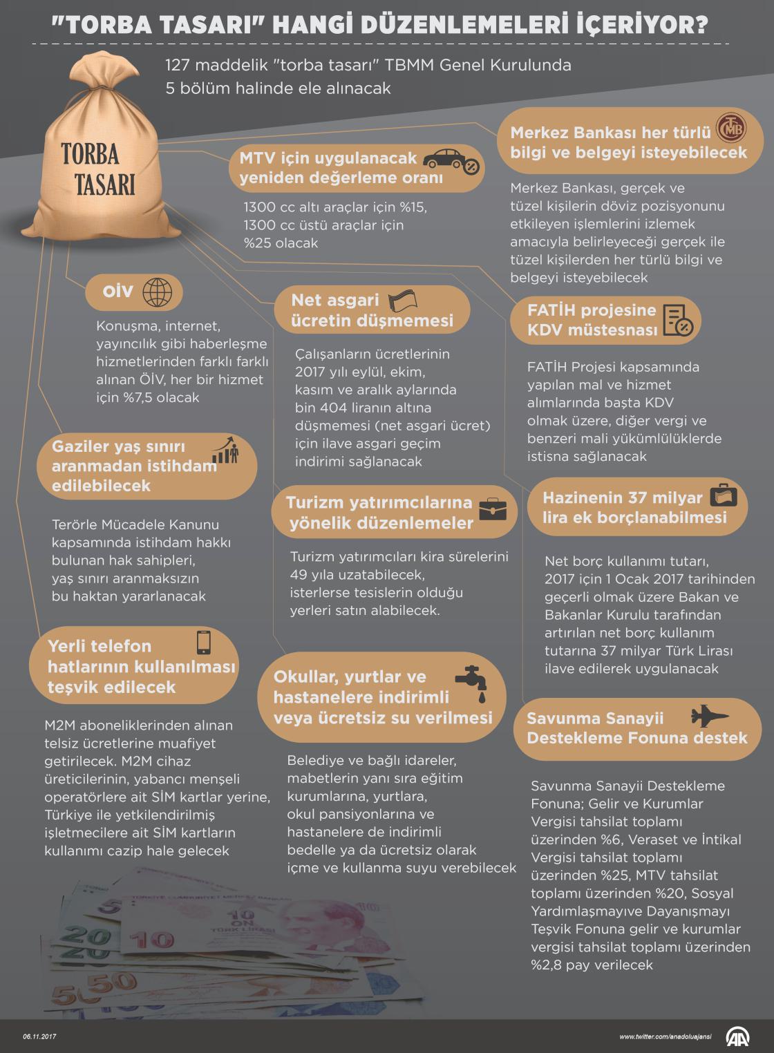 TBMM Genel Kurulunda, kamuoyunda "torba tasarı" olarak bilinen, Bazı Vergi Kanunları ile Diğer Bazı Kanunlarda Değişiklik Yapılmasına Dair Kanun Tasarısı'nın, 1-27'nci maddelerini kapsayan birinci bölümü kabul edildi.