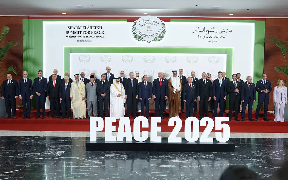 Şarm el-Şeyh Barış Zirvesi ‘aile fotoğrafı’, 13 Ekim 2025. (Fotoğraf: Anadolu Ajansı)