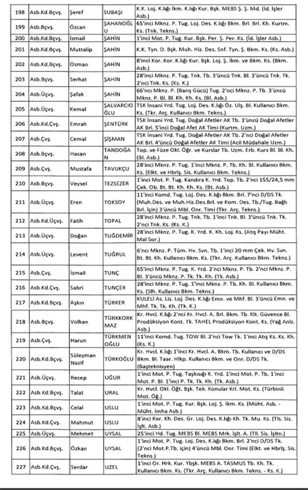 TSK'dan İhraç Edilen Personelin Listesi