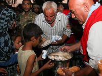 ÖSO'nun tamamen kontrol altına aldığı Cerablus'a gelen Türk Kızılayı ekipleri, ÖSO'ya bağlı askerlerin yoğun güvenlik önlemi almasının ardından Şehitler Meydanı'nda sıcak yemek dağıttı.