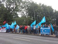 Doğu Türkistandaki zulmü protesto etmek için Pazar günü bir grup Müslüman Hamburg eyaletindeki Çin Konsolosluğu önünde bir araya geldi.