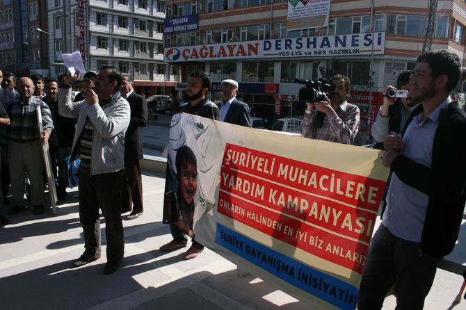 Suriye Dayanışma İnisiyatifi adına basın açıklamasını okuyan Fırat Toprak; Kim ne derse desin Suriye Devrimi Tunus’la başlayan Libya, Mısır ve Bahreyn’le devam eden Ortadoğu İntifadalarının şanlı bir halkasıdır diyerek kim ne derse desin Hakkın ve halkın iradesinin emperyal hesapları bozguna uğrattığı yalın gerçeğini örtemez dedi. Toprak; komplo teorileri kadınıyla çocuğuyla bir halkın katledilmesini meşru gösteremeyeceğine vurgu yaptı.