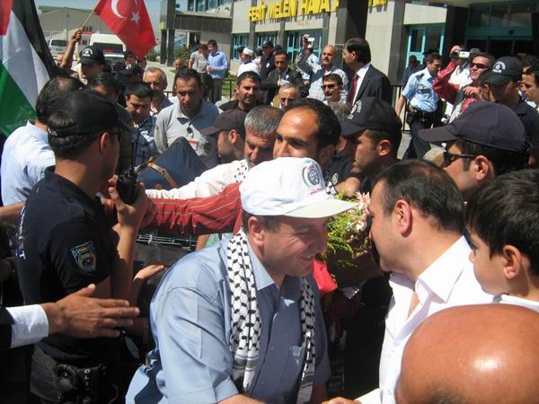 Konuşmacılar, İsrail'in vahşi saldırısında hassasiyetlerini göstererek samimi bir şekilde gönüllülere destek veren Türkiye halkına, cumhurbaşkanına, Başbakana, Dışişleri Bakanına ve halka teşekkür etmeyi de ihmal etmedikleri konuşmalarında "Gemide olmanın dışında, bize dışarıdan da destek verenlerin direnişiyle bunu başardık." Dediler. Yapılan konuşmaların ardından, karşılama gösterisi son buldu.