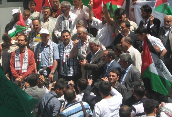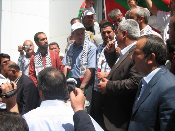 İsrail, "rotamız Filistin" sloganıyla yola çıkan "insani" yardım filosuna, ölü ve yaralılarla sonuçlanan vahşi bir saldırıda bulunması, karşılamaya gelen halk tarafından sloganlar atılarak protesto edildi. İsrail'i protesto sloganları arasında gönüllülerin yaptığı duygusal konuşmacılardan bir diğeri Abdulhelim Almalı'ydı. Yaralanma ve saldırı anını anlatan Almalı konuya özetle şu şekilde değindi: "Hiç beklemediğimiz bir saldırıydı. İsrail karasularından uzak olmamıza rağmen, sabaha yakın İsrail askerleri saldırıya geçtiler. Savaş gemileri, deniz altılar ve helikopterlerle gemiye girmek istediler, biz bunu tahmin ediyorduk. Geri püskürttük, o zaman da havadan indirme yaptılar. Arkadaşlar inen üç askeri etkisiz hale getirdiler. İsrail askerleri beklenmedik bu rastgele tarama yaptılar, bir kurşun koluma değdi. Kolum şu anda ikiye bölünmüş durumda… İlk müdahale gemide yapıldı ve İsrail hastanelerine götürdüklerinde ikinci bir alçı sarıldı, ancak bütün ısrarlarına rağmen onların hastanesinde ameliyet olmayı kabul etmedim ve bugün Van'da ameliyat olacağım…" Sık sık sloganlarla, tekbir sesleriyle kesilen konuşmalar esnasında duygusal anların yaşadığı da gözden kaçmadı.