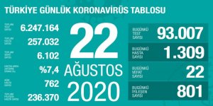 Sağlık Bakanı Fahrettin Koca koronavirüs (corona virüs) nedeniyle son 24 saatte 22 kişinin hayatını kaybettiğini, toplam can kaybı sayısının 6 bin 102'ye yükseldiğini açıkladı. Toplam vaka sayısı ise 1309 artarak 257 bin 32'ye çıktı.