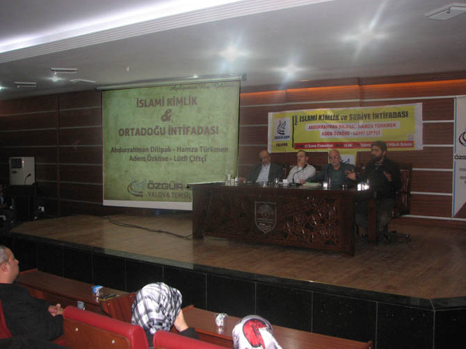 Panele gazeteci-yazar Abdurrahman Dilipak, Haksöz Dergisi Yazarı Hamza Türkmen ve gazeteci-yazar Adem Özköse davet edildiği programda Fatih Özçetin'in Kur'an-ı kerim ve mealini okumasının akabinde Özgür-Der Yalova temsilciliği adına Lütfi Çiftçi açılış konuşması yaptı. Özgür-Der genel başkanı Rıdvan Kaya selamlama konuşmasında müslümanların birlik ve dayanışmasına vurgu yaparak tebrik ve başarı dileklerini iletti. Ardından Suriye intifadasını konu alan sinevizyon gösterisi izlendi.