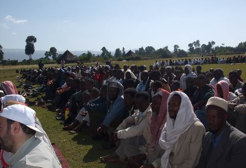 Köyün imamı bizi caminin avlusuna davet ediyor. Yine en güzel yemekler hazırlanmış bizim için. Bizler yemek yerken imam Ebubekir Hacı Muhammed konuşuyor, Dr. İbrahim tercüme ediyordu. Gelmemizden ve kurban getirmemizden duydukları memnuniyeti ifade ediyor Hacı Muhammed ve bu tür dayanışma örnekliklerinin içeride Müslümanların moralini yüksek tutarken dışarıda özellikle misyonerlerin desteği ile hareket eden Hıristiyan unsurlara karşı bir özgüven vesilesi olduğundan bahsediyor. Diğer yerlerde dinlediğimiz gibi misyonerlik faaliyetlerinin okullar kurarak, büyük ve etkileyici kiliseler inşa ederek Etiyopya toplumunu Hıristiyanlaştırma faaliyetlerine dikkat çekiliyor. Sorunların aşılabilmesi için uyanık olmaya, bilgi ve tecrübeyi paylaşmaya ve elbette ki dayanışmaya ihtiyaç olduğuna dikkat çeken Hacı Muhammed köydeki davet ve irşad çalışmaları hakkında bilgi veriyor bizlere. Dikkat çekici bir husus okula giden tüm çocuklar okul dışı zamanlarında Kur'an öğrenmek üzere camiye geliyorlar. Kız olsun erkek olsun neredeyse tüm çocuklar Amme cüzünü baştan sona ezbere biliyor, Yasin ve Tebareke'yi gayet fasih bir biçimde okuyorlar. Cemaat namazlarına kadınlar da iştirak ediyor ve cami cemaatin ihtiyacını karşılayamayacak durumda olduğu için avluya sadece bayanlara ait olmak üzere bir mescit inşa edildiğini öğreniyor ve görüyoruz.