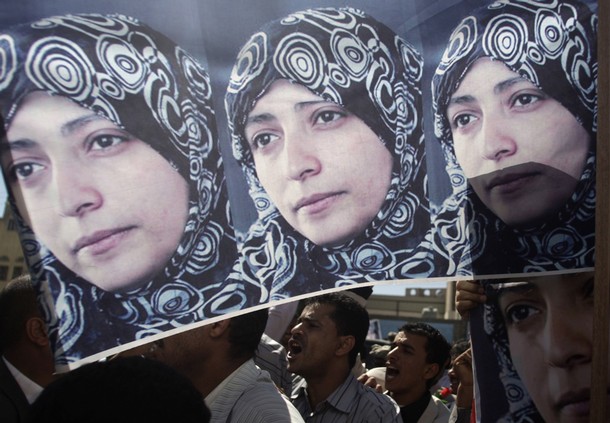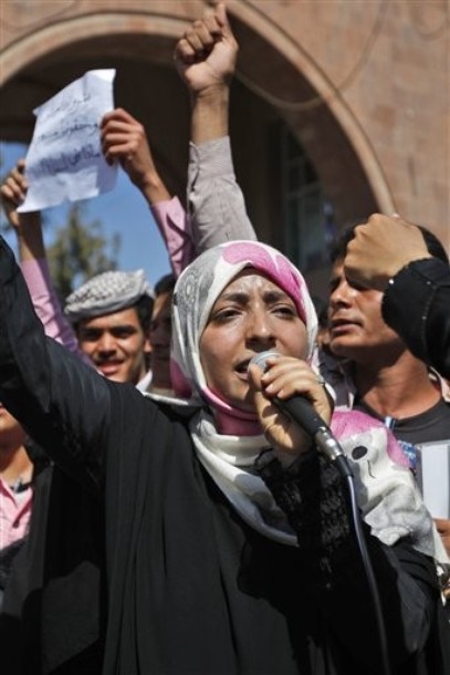 Islah Partisi üyesi Tevekkül Karman hapse atılmadan önce bir protesto gösterisinde...