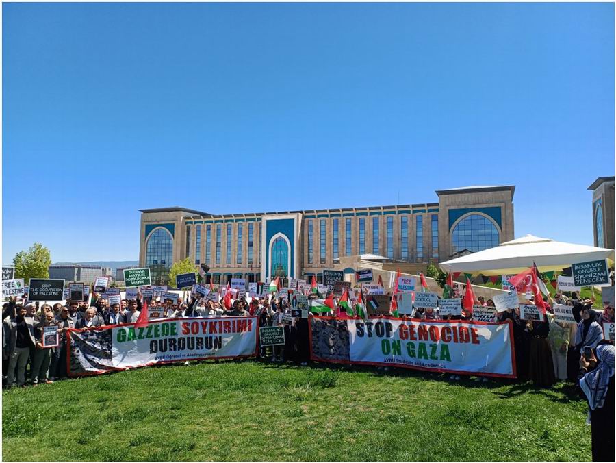 Ankara Yıldırım Beyazıt Üniversitesi’nde ABD üniversitelerinde Filistin’e destek eylemleri gerçekleştiren öğrencilere destek mesajı yollandı.