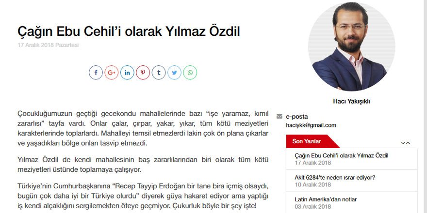 3 farklı gazetede farklı tarihlerdeki aynı yazıyı yayımlayabilen ve hakkında gazeteler arası transfer ücreti için 5 milyon dolar gibi astronomik bir tutar dile getirilen Yılmaz Özdil'in ileri düzey kopyala-yapıştır köşe yazarlığı