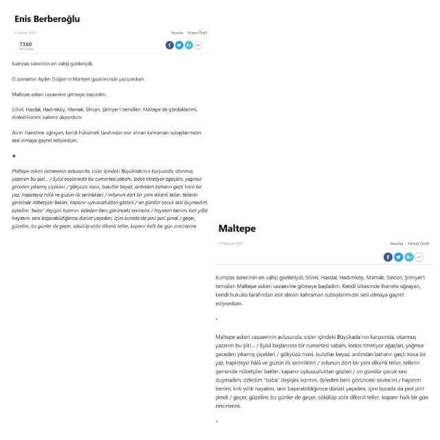 - (Sözcü – “Enis Berberoğlu” – 6 Haziran 2020) = (Sözcü – “Maltepe” – 17 Haziran 2017)