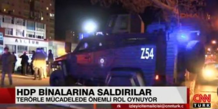 CNN Türk HDP binalarına yapılan saldırı haberlerini girdiğinde altta "HDP binalarına saldırılar terörle mücadelede önemli rol oynuyor" bandını girdi.