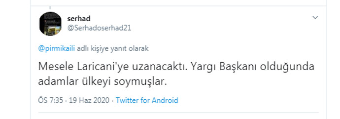 Devrim Muhafızları Ordusunun İstihbarat Birimine yakınlığıyla bilinen Meşreg News gazetesinin editörlerinden Romanya'da ölü bulunan kıdemli hakim Gulamrıza Mensuri'nin haberinden sonra atıp sonra sildiği Tweet