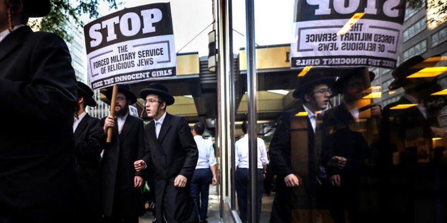 ABD’nin New York kentinde toplanan bir grup Ortodoks Yahudi, işgalci İsrail hükümetinin zorunlu askerlik planına tepki gösterdi.